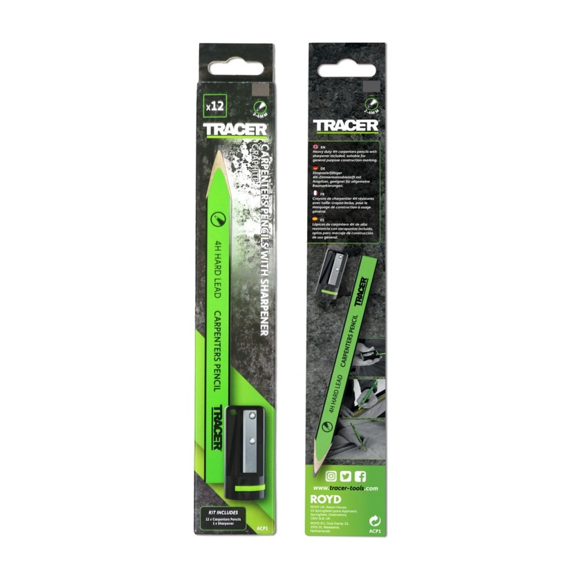 Deze tracer set timmermanspotloden bevat 12 timmermanspotloden en een puntenslijper. Deze set is geschikt voor nauwkeurige markeerbeurten. De puntenslijper houdt de potloden in topvorm voor precisie. Je kunt deze potloden gebruiken voor verschillende bouw- en houttoepassingen.