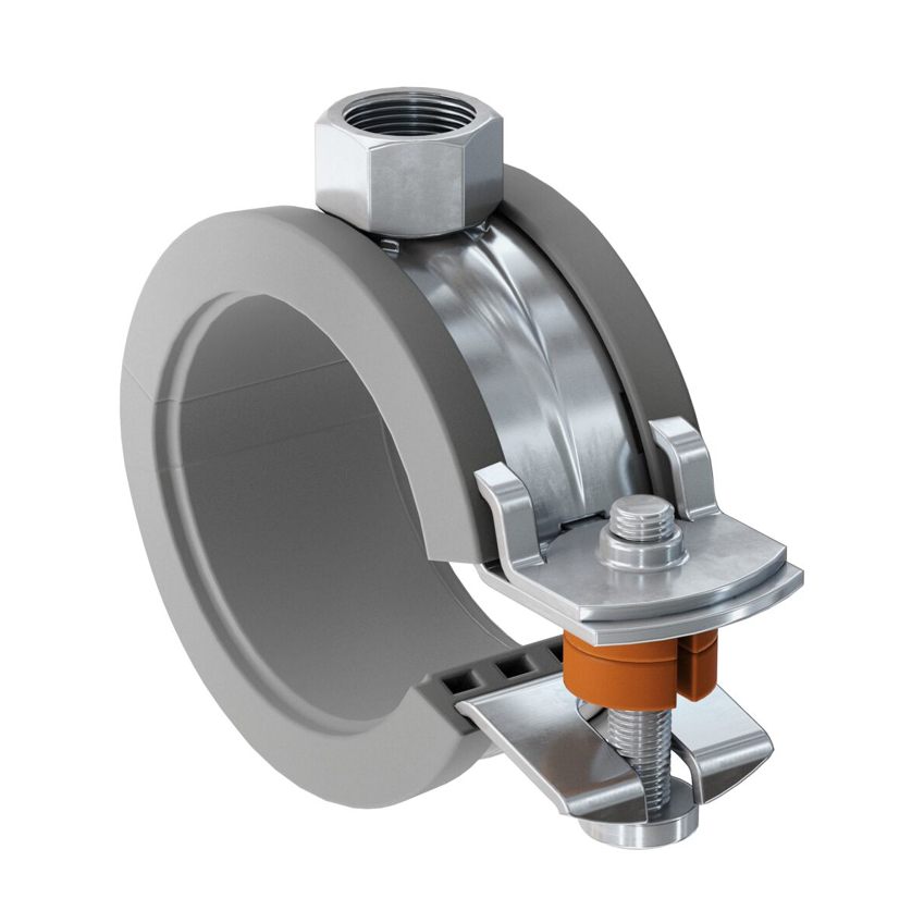 De Fischer kunststof pijpbeugel FKS Plus met de snelsluiting maakt een eenvoudige en tijdbesparende montage van leidingen mogelijk. De afstandshulzen op de afsluitschroef garanderen dat de leidingen kunnen glijden wanneer sprake is van uitzetting in de lengte. De moer met schroefdraad M8 voor de opname van draadstangen of stokschroeven. Pijpklemschroeven met verliesbeveiliging.