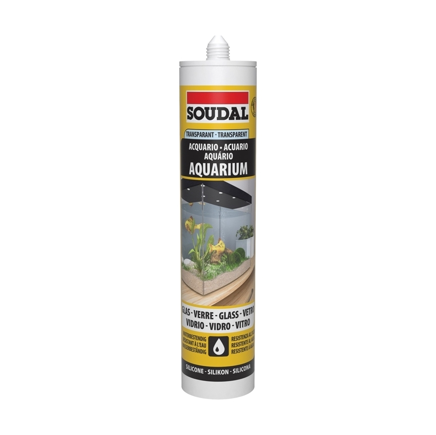 Soudal Silirub AQ is een siliconenvoegkit voor verlijming van glasconstructies en productie van aquariums. Deze voegkit is uiteraard volstrekt onschadelijk voor vissen.