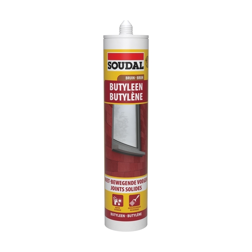 Soudal Butyleen Butyrub is een plastische, velvormende butyleenvoegkit. Na 24 u overschilderbaar. Hecht zeer goed op alle gebruikelijke bouwondergronden. Geschikt voor statische voegen.