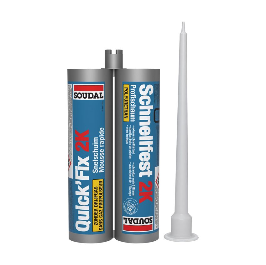 Soudal Espress 2-component Montageschuim op basis van Polyurethaan (PU) is door zijn snelle doorharding en hoge eindsterkte uitstekend geschikt voor het snel en stevig monteren van raam- en deurkozijnen.