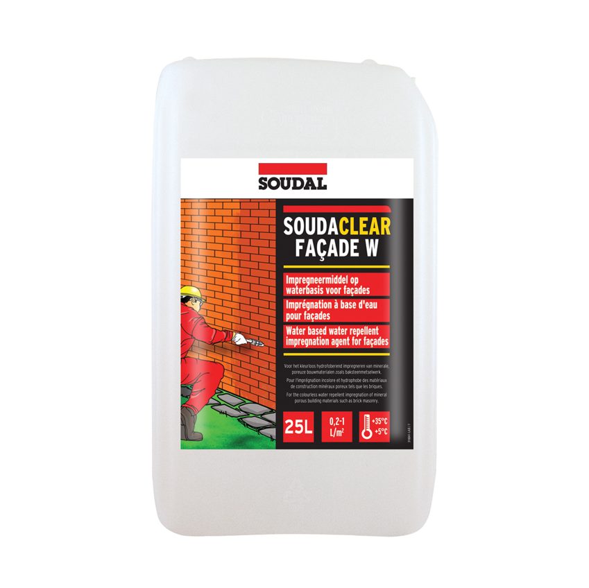 Soudal Soudaclear Façade W is een impregneermiddel op waterbasis voor façades en geschikt voor het kleurloos hydrofoberend impregneren van minerale, poreuze bouwmaterialen zoals baksteenmetselwerk. Dit product vervangt de vroegere Soudal Hydrofuge.