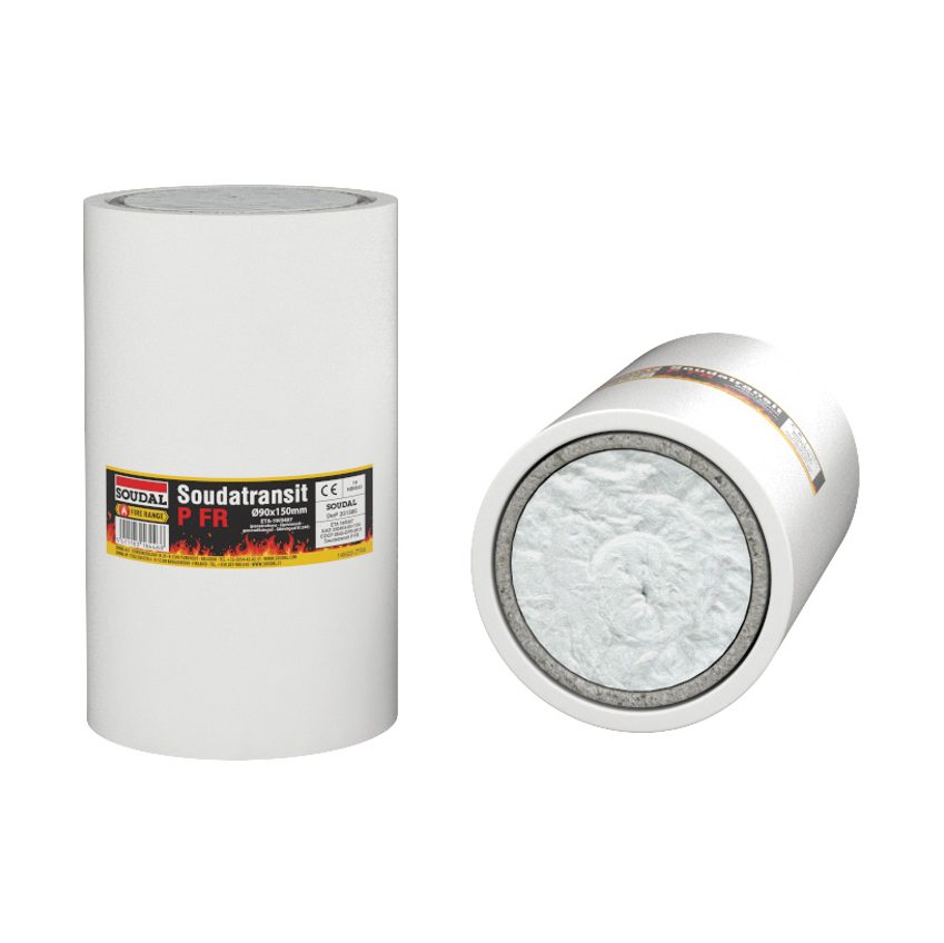 Soudal Soudatransit P FR hoort bij het Soudal brandwerend assortiment. Soudatransit P FR is een doorvoerstuk voor kabels en kleine kunststofbuizen, dat ook kan worden gebruikt als voorlopige brandwering. Het bestaat uit een ronde kunststofbuis die bestand is tegen hoge temperaturen en voorzien is van een opschuimend voeringsmateriaal op basis van grafiet. Wanneer het opwarmt, zet het grafiet uit zodat het openingen en leemten rond kabels en buizen vult en voorkomt dat vlammen, rook en gassen zich verspreiden. Soudal Soudatransit P FR biedt een brandklasse tot EI 240.