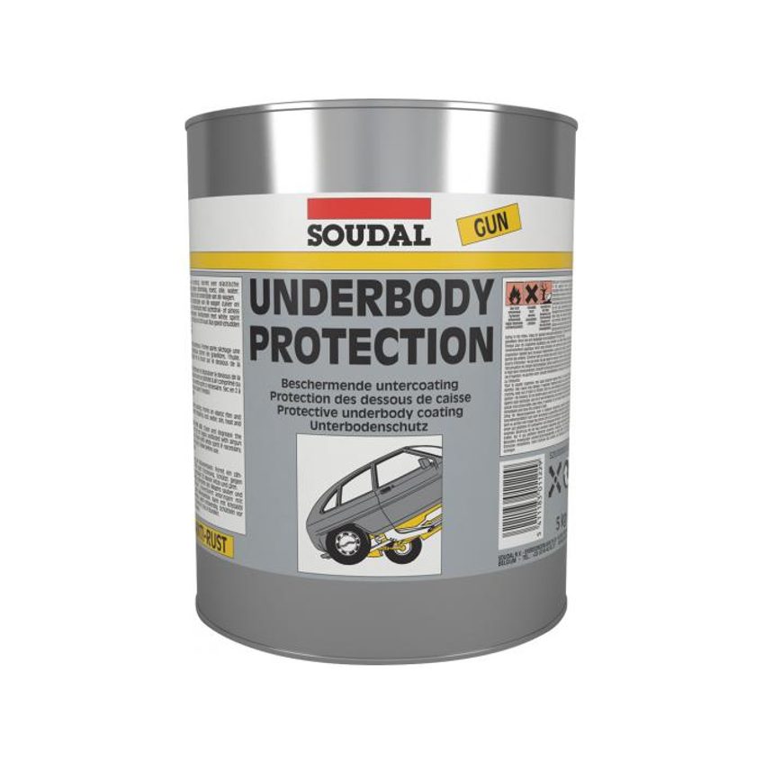 Soudal Underbody Protection is een coating op basis van bitumen. Beschermt de onderzijde van het koetswerk en de wielopeningen. Vormt een elastische, geluiddempende laag en beschermt tegen roest, olie, water en corrosie. Niet overschilderbaar