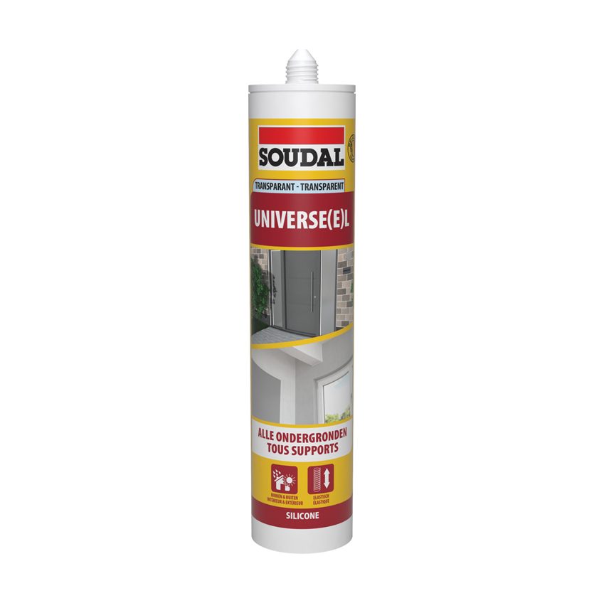 Soudal Universeel is een zeer elastische siliconenkit. Ideaal voor universele bouwtoepassingen aangezien het geschikt is voor zowel binnen als buiten voegen. Door het azijnzuurhoudend karakter kan deze siliconenkit echter niet gebruikt worden op kunststof ondergronden. De universele siliconenkit is niet overschilderbaar.