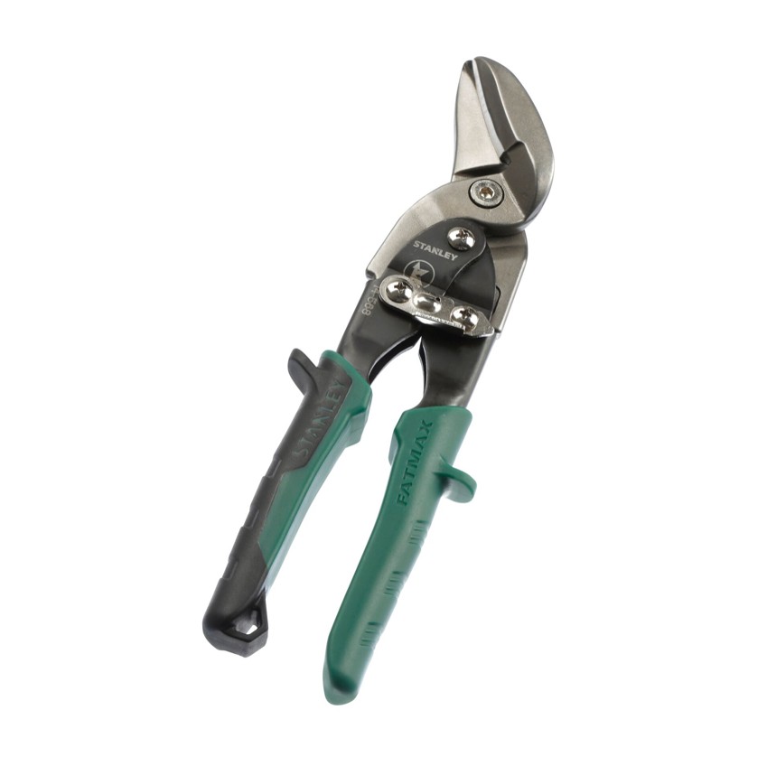 Stanley blikschaar met smalle bek recht en linksom en een gesmede constructie in hooggelegeerd staal (chroommolybdeen) voor sterkte en om de rand vast te houden.