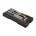 De 23 onderdelen zijn netjes gerangschikt in een modulaire Transmodule-tray voor overzichtelijke opslag en snelle toegang. Geschikt voor gebruik met standaard ½” ratels en accessoires, levert deze set consistente, betrouwbare prestaties bij een breed scala aan bevestigingswerkzaamheden.
