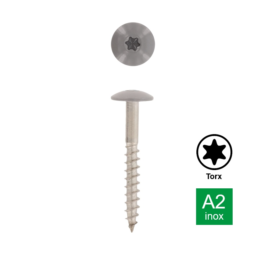| 9086-048-050-A2-STG/100 | Trespaschroef Torx TX20 gelakt Ral 7037 (Stofgrijs) 4.8x50 inox A2 | | | |