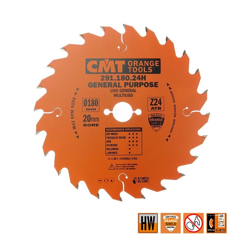 CMT Universele cirkelzaag voor draagbare machines, voor massief hout & multiplex 180x20x2.6mm Z24 HW - 291.180.24H