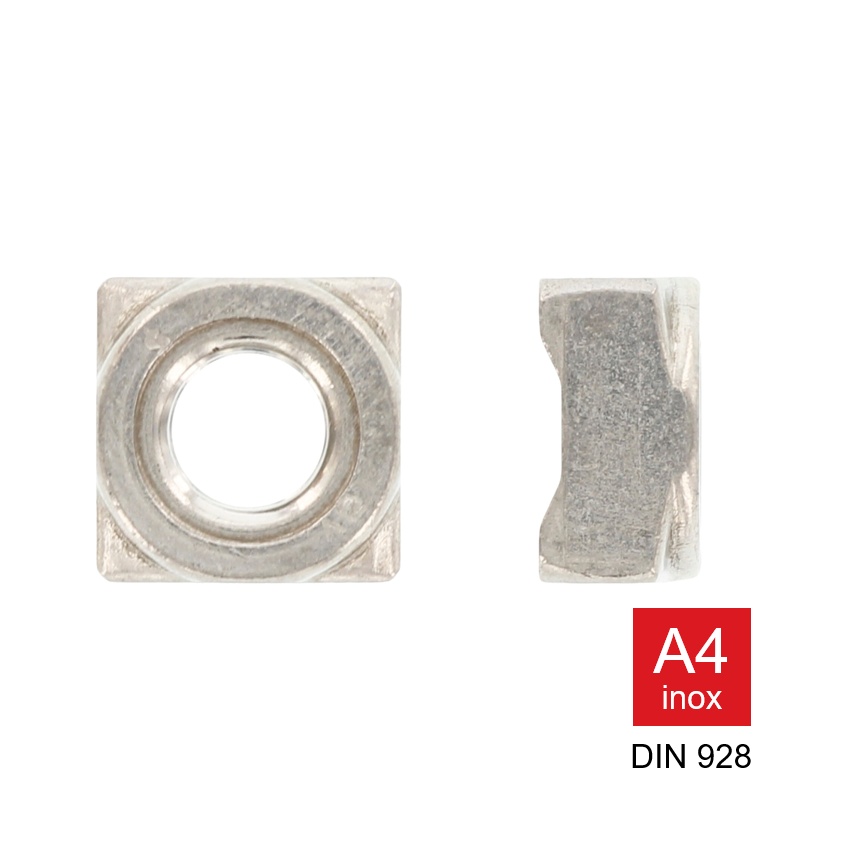 Het vierkante, laagprofiel ontwerp maakt nauwkeurige positionering vóór het lassen mogelijk en zorgt voor een stabiele, duurzame verbinding zodra de moer met het oppervlak is versmolten. De A4 roestvaststaalsamenstelling biedt superieure weerstand tegen vocht, zoutinvloeden en chemische belasting.