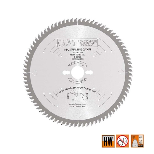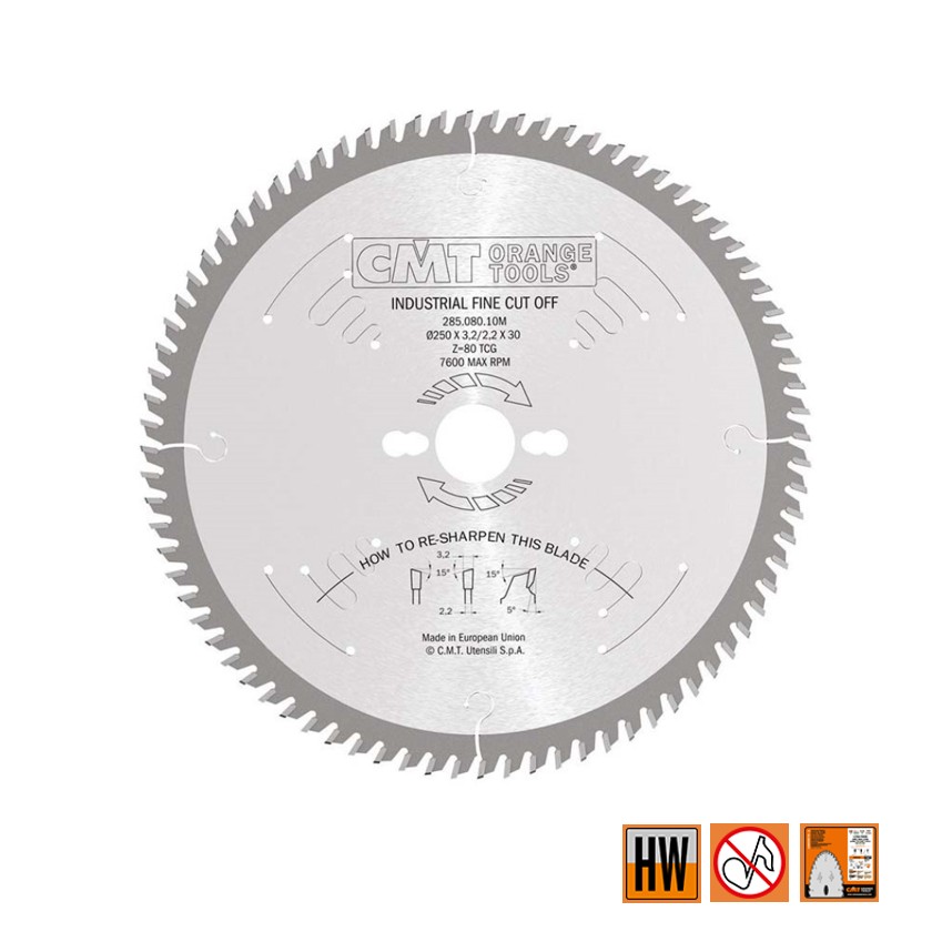 Het CMT afkortzaagblad (250x30x3,2mm Z60 HW) is ontworpen voor zowel draagbare als stationaire machines en biedt nauwkeurige, splintervrije zaagsneden in massief hout en op hout gebaseerde plaatmaterialen.