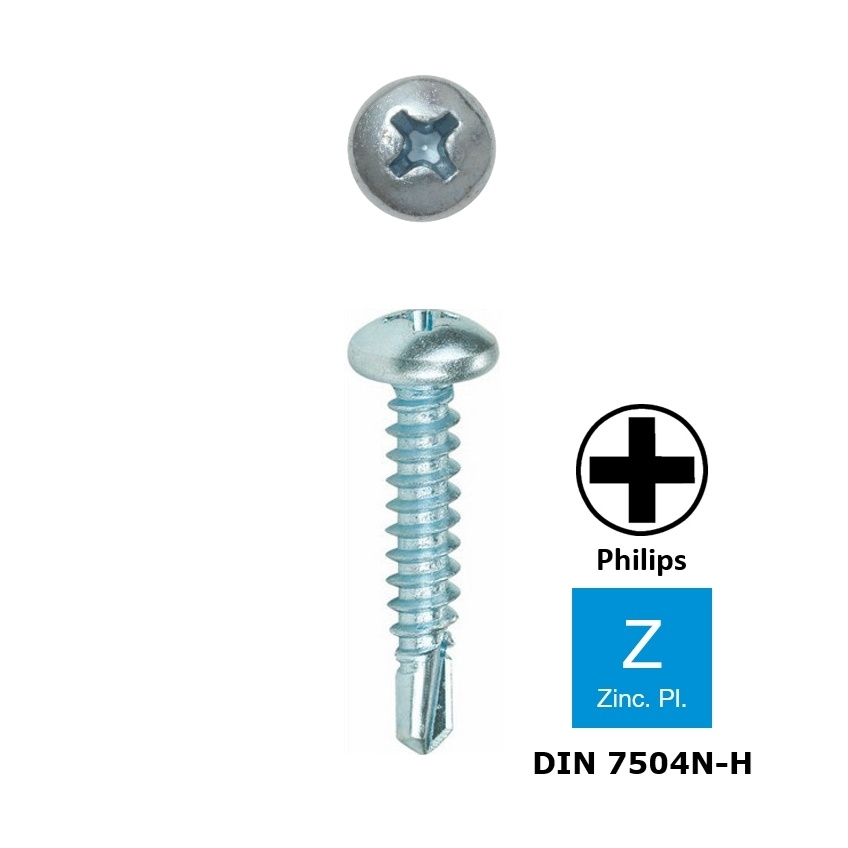Zelfborende plaatschroef met bolle kop Philips PH1 Din 7504N-H 2.9x9.5 verzinkt